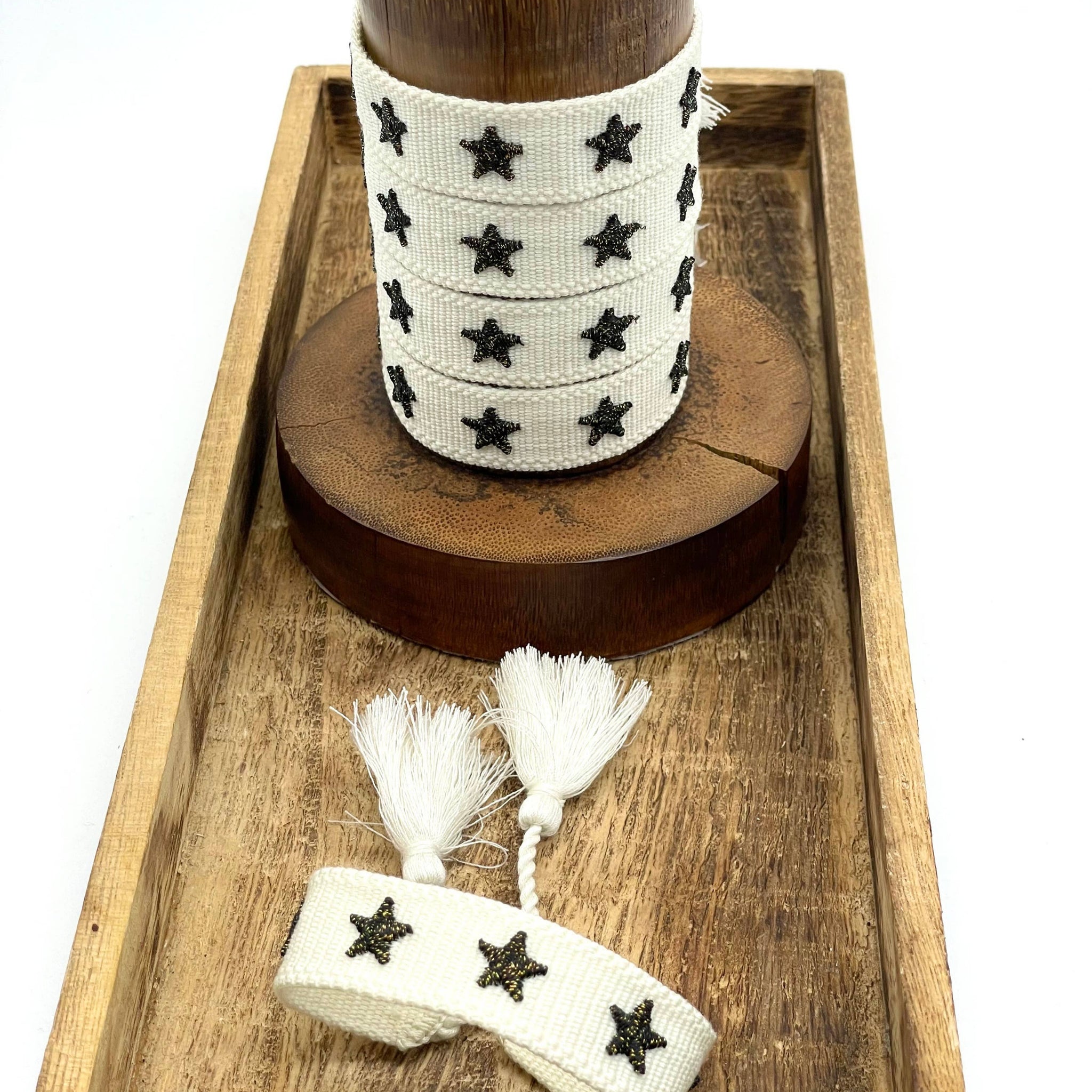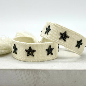 STERNE Armband: Creme, Text: 5 Sterne gestickt; schwarz, gold, Glitzer