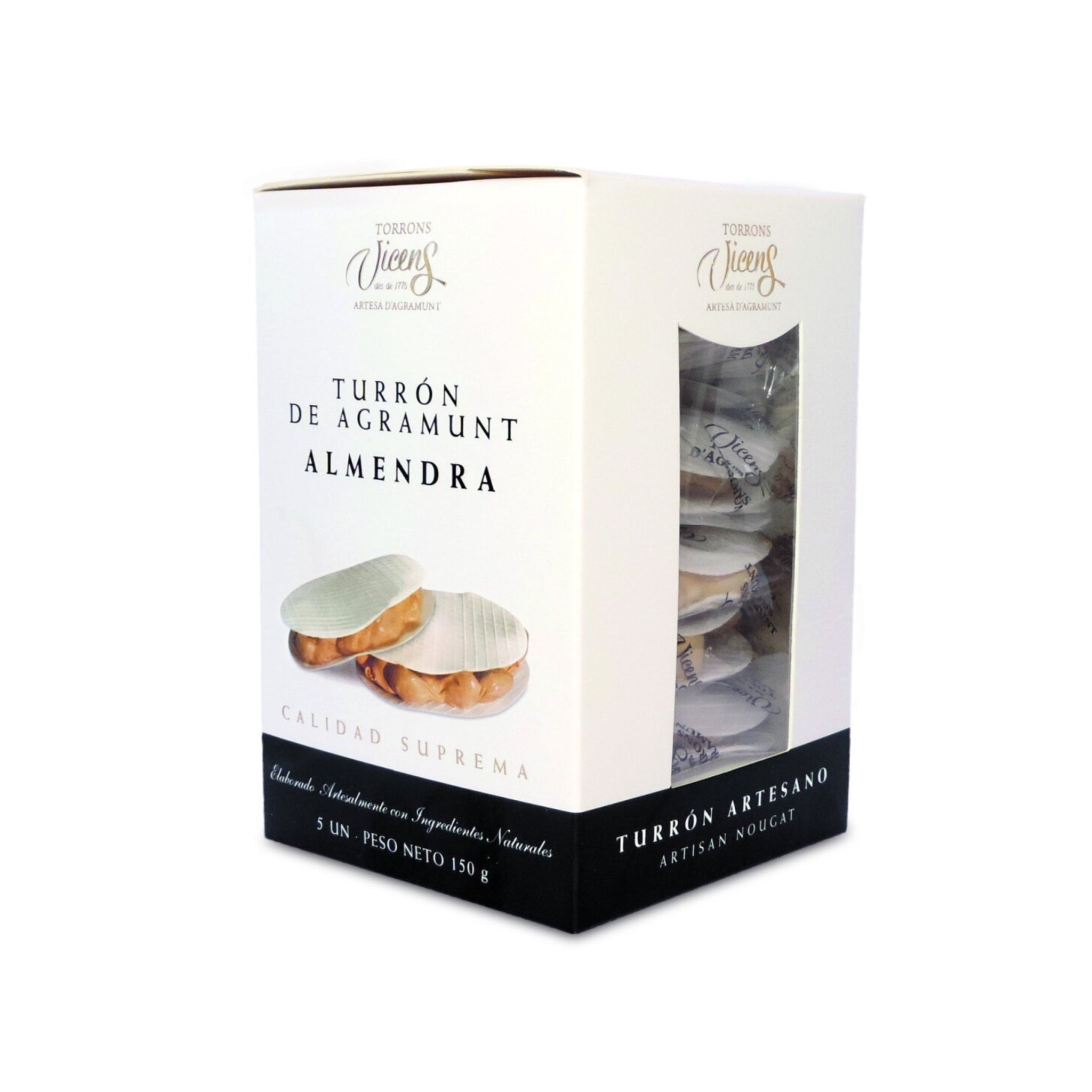 Ein traditioneller Genuss aus Agramunt: Diese feinen, runden Turrón-Küchlein bestehen aus ausgewählten Mandeln, zartem Oblatenpapier und einem Hauch von Honig – liebevoll hergestellt nach handwerklicher Rezeptur.